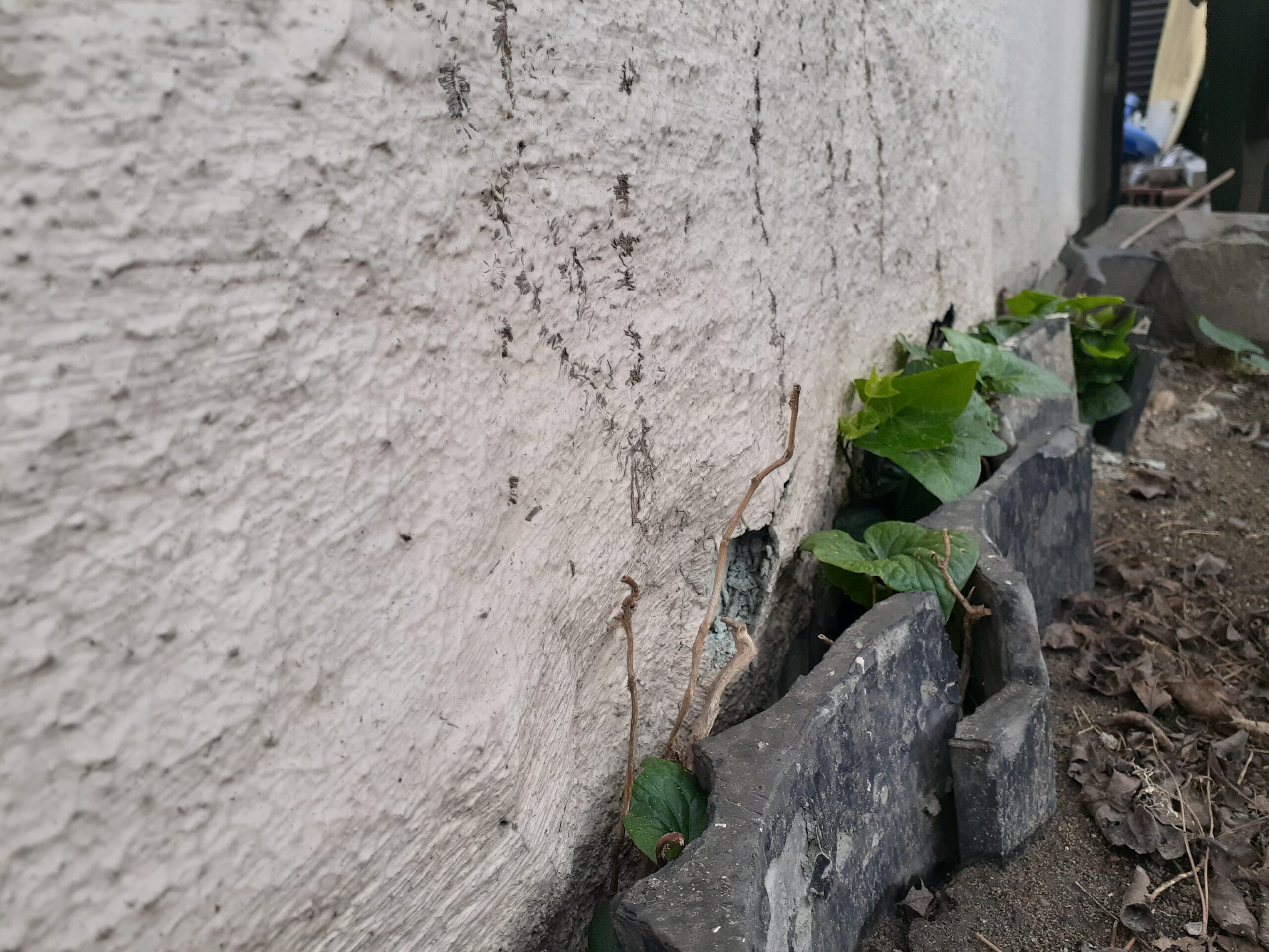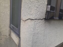 外壁に1mm以上のヒビが入っている場合は要注意です。特に窓枠やサッシの周り、コーキング部分のヒビは雨漏りの原因になります。放置すると内部に水が染み込み、構造材を傷める可能性があります。