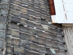 あま市のBさんは、風で飛ばされた瓦を自分で戻しました。しかし、瓦の重なり位置が数ミリずれているままコーキングで補修をされてしまいました。そこから雨水が侵入。内部のルーフィング(防水シート)が劣化し、雨漏りが広がりました。 瓦は見た目が整っていても、正しい角度・重なり幅で設置されていないと防水性能が保てません。瓦の構造は精密に設計されているため、1枚でもずれると屋根全体の耐風性や防水性が落ちるのです。