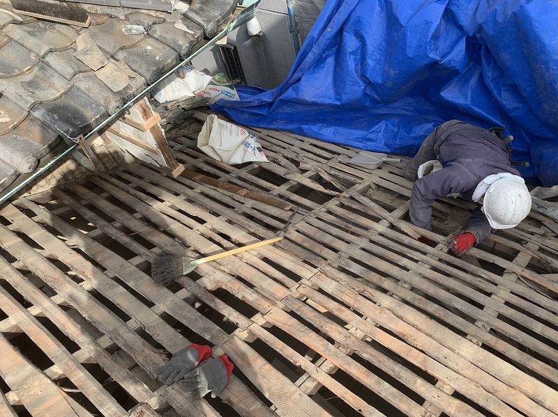 名古屋市O様邸 一面葺き替え工事 2025.11.09 (Sun) BEFORE AFTER 名古屋市O様邸 施工データ 工事内容 一面葺き替え工事 築年数 70年 施工日数 8日間 工事金額 80万円 メーカー・商品 和形陶器瓦 担当者より 長年雨漏りにお困りのお客様でした。部分的な補修が難しい状態で、かつ屋根全体の葺き替えはご検討されておりませんでしたので、一面のみの葺き替えをご提案させて頂きました。無事に雨漏りが改善されたようで良かったです。 工事写真レポート 既設瓦撤去 既設土撤去 構造用合板張り ルーフィング(防水紙)貼り 桟木打ち瓦固定 袖瓦固定 棟瓦納め