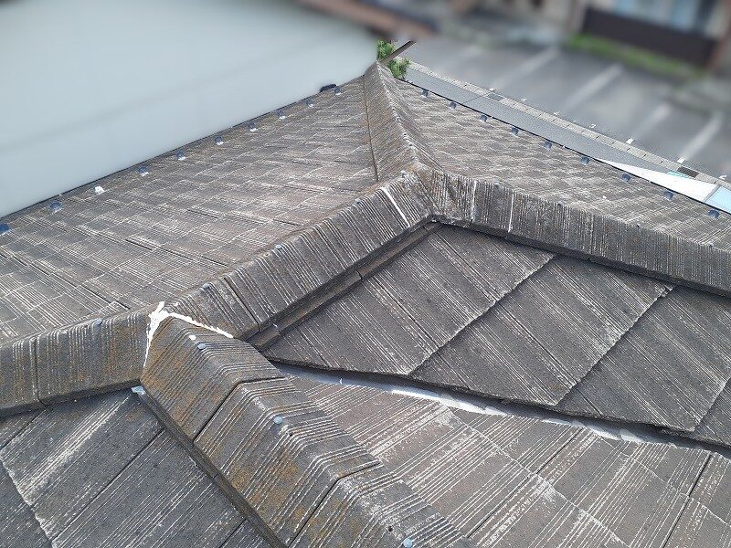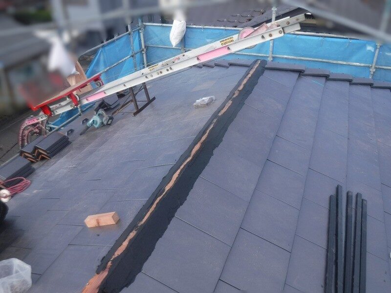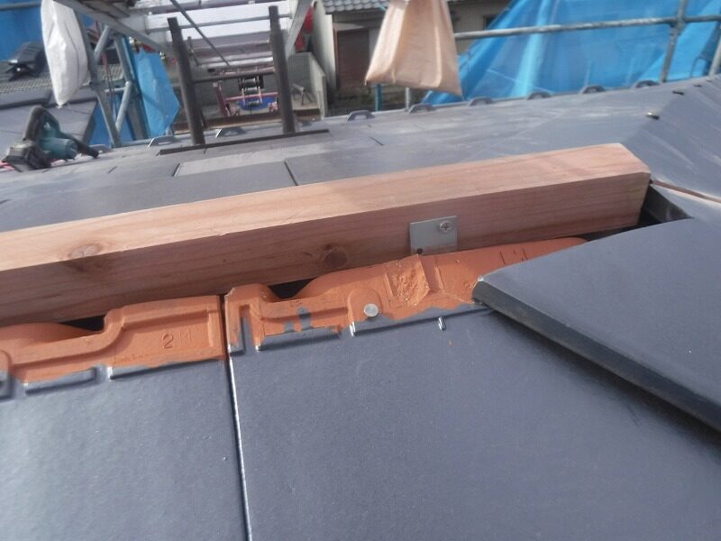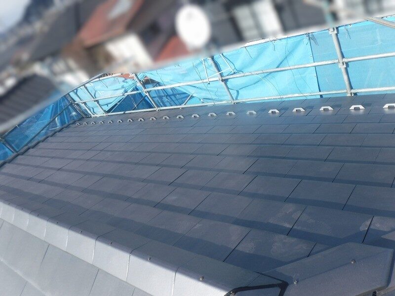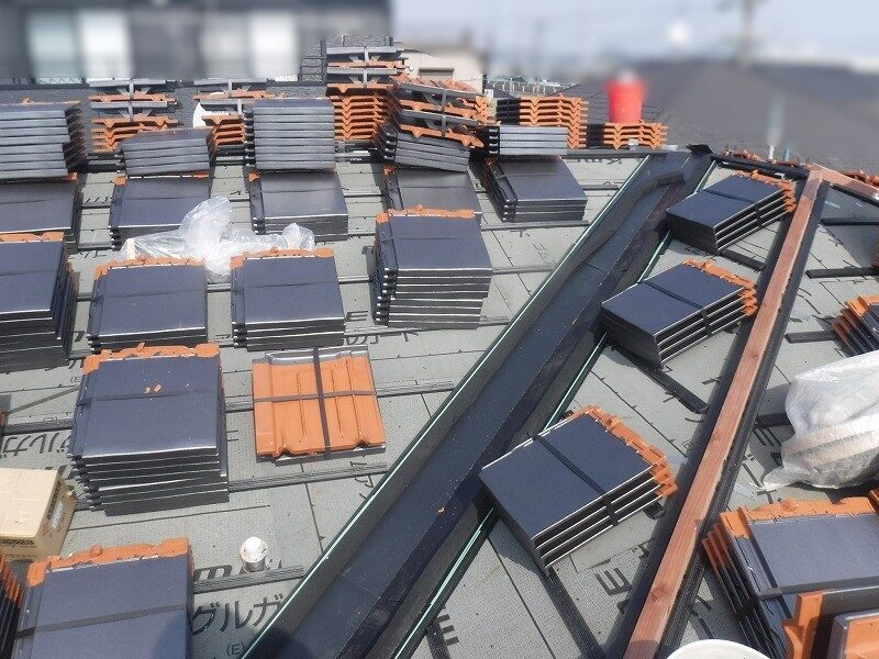 稲沢市I様邸 平板瓦に葺替え工事 2026.03.24 (Tue) BEFORE AFTER 稲沢市I様邸 施工データ 工事内容 平板瓦に葺替え工事 築年数 約30年 施工日数 9日間 工事金額 約180万円~200万円 メーカー・商品 ㈱鶴弥 スーパートライ110スマート 銀鱗色 担当者より モニエル瓦に著しい傷みが生じておりましたので、今後塗装等のメンテナンス不要の陶器瓦への葺き替えをご提案させて頂きました。 工事写真レポート 既設瓦撤去作業 屋根木下地補強 ゴムアスルーフィング貼り谷部にはステンレス谷板を使用しました。 瓦全数釘打ち固定軒瓦には7形釘を使用して強風対策をしました。 棟部垂木固定 棟部なんばん塗り 瓦葺き作業