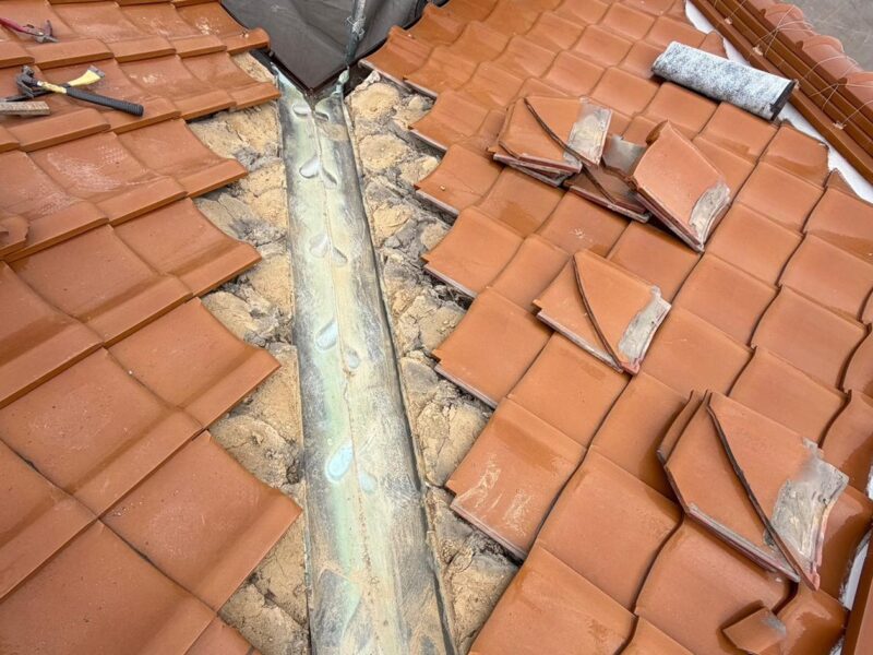 あま市S様邸 谷板交換工事 2026.03.28 (Sat) BEFORE AFTER あま市S様邸 施工データ 工事内容 谷板交換工事 築年数 約40年 施工日数 1日間 工事金額 約15万円 メーカー・商品 ステンレス谷板 担当者より 銅板の谷板が腐食して穴が開いていましたのでステンレスの谷板に交換させて頂きました。 工事写真レポート 谷板まわり瓦はずし 既設谷板撤去 ルーフィング敷き ステンレス谷板取付け
