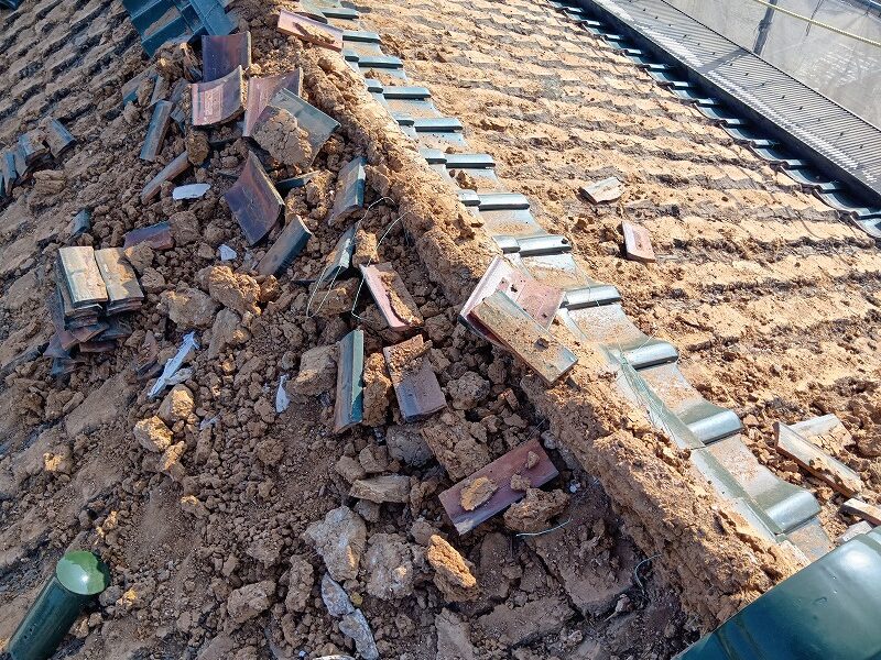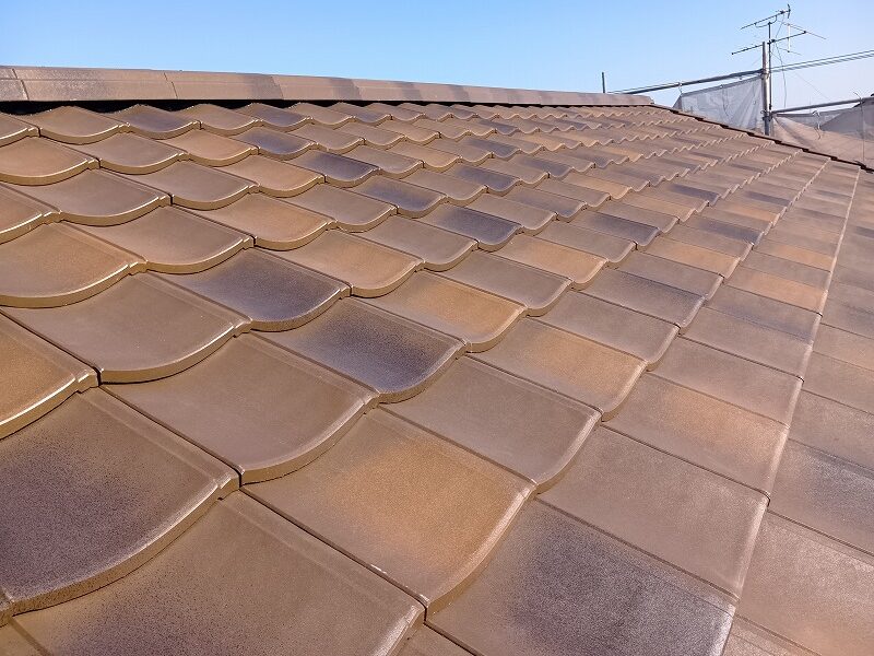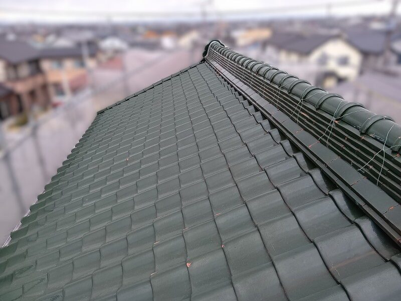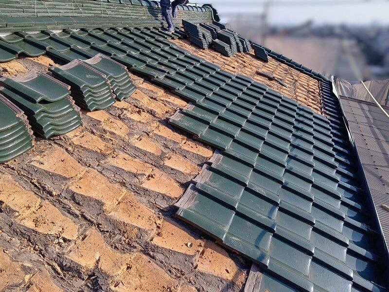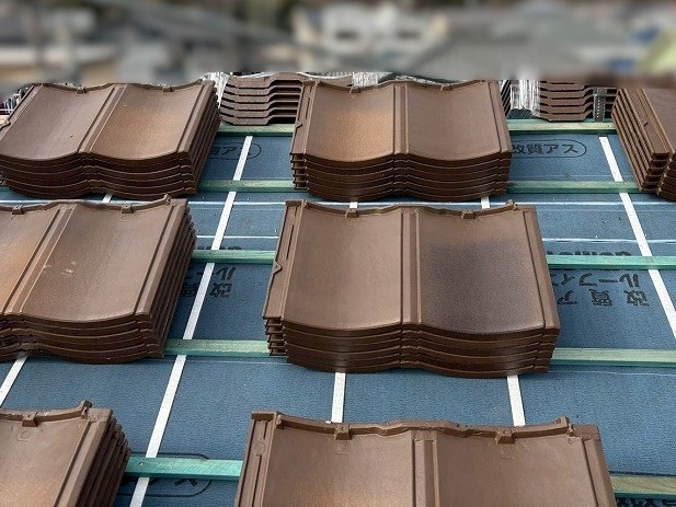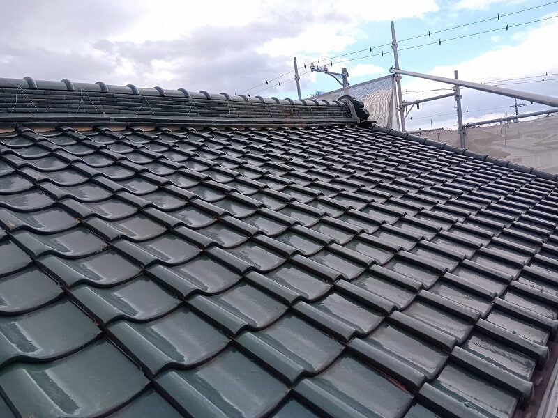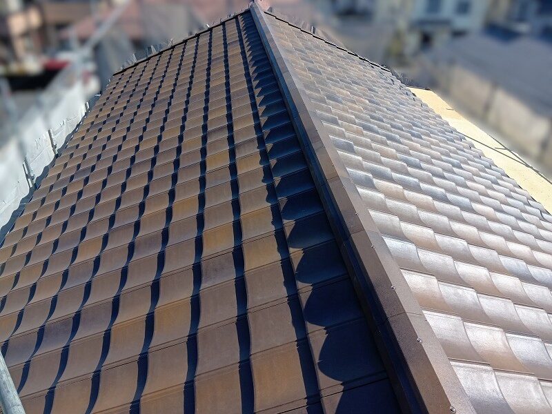 屋根の軽量化をご希望のお客様でした。瓦の約半分の重量のROOGA雅をご提案させて頂きました。既設が土葺きのため屋根の重量は4分の1程に軽くすることができました。